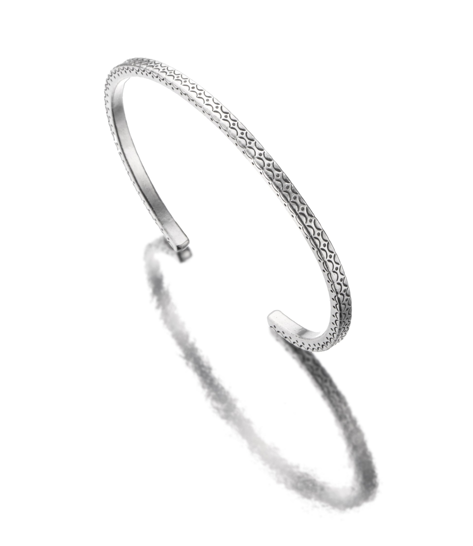 Our ethically sourced, handcrafted sterling silver bracelet is intricately stamped with traditional Karen hill tribe designs and oxidized to enhance the details. People with skin sensitivities will be pleased to know that all of Talis jewellery is made from solid, non-allergenic, nickel-free silver.