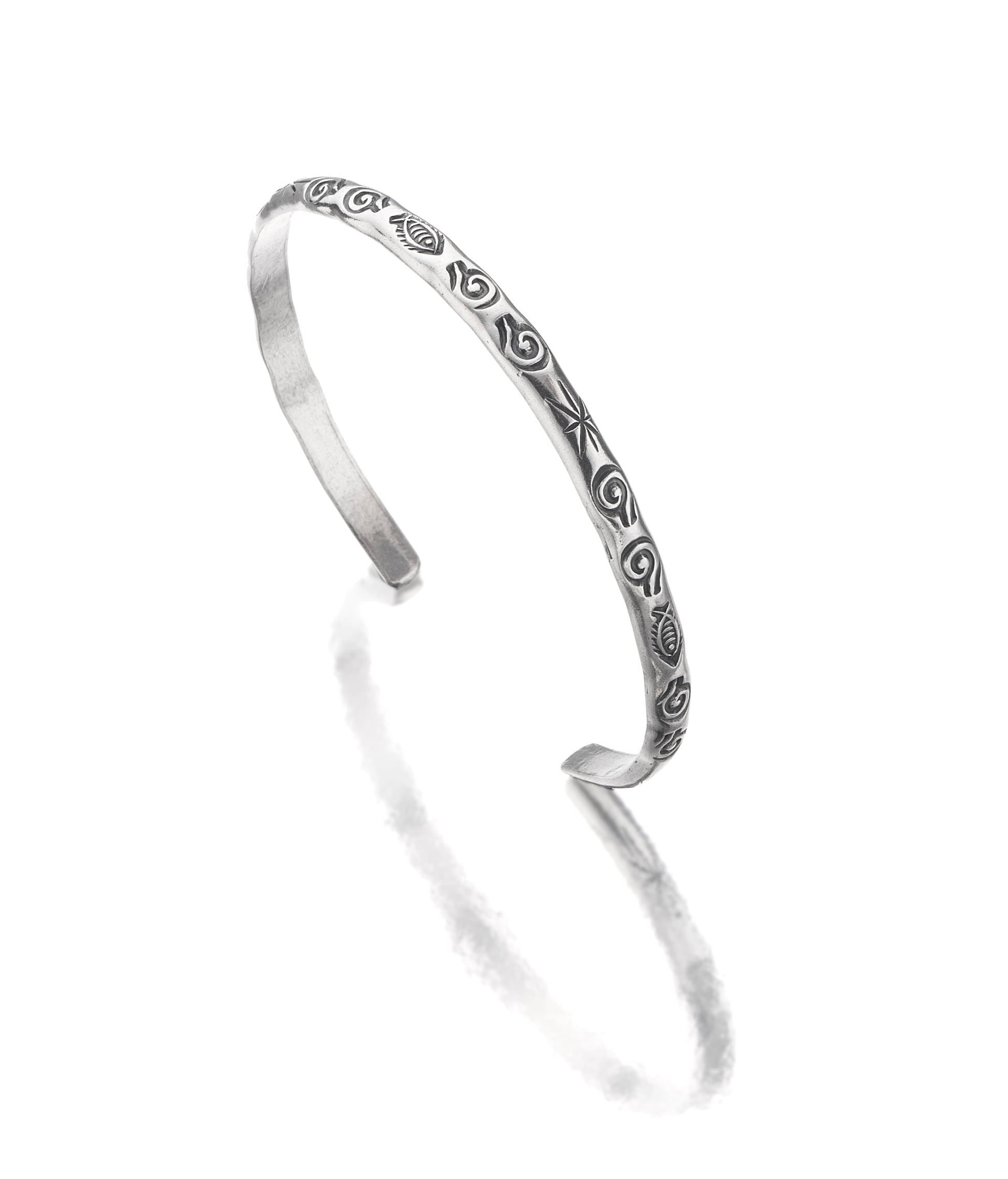 Our ethically sourced, handcrafted sterling silver bracelet is intricately stamped with traditional Karen hill tribe designs and oxidized to enhance the details. People with skin sensitivities will be pleased to know that all of Talis jewellery is made from solid, non-allergenic, nickel-free silver.