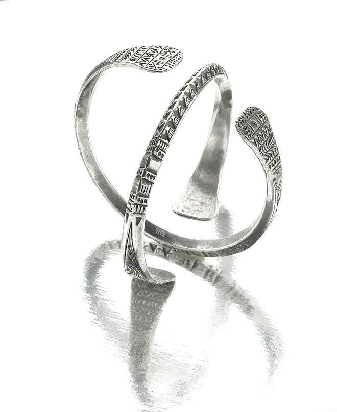 Our ethically sourced, handcrafted silver Ancient Harvest Bracelet is meticulously stamped with traditional Karen hill tribe designs and oxidized to enhance the details. It has substantial weight to it, which makes it suitable for daily wear and quite popular with men. People with skin sensitivities will be happy to know that all of Talis jewellery is made from solid, non-allergenic, nickel-free silver.