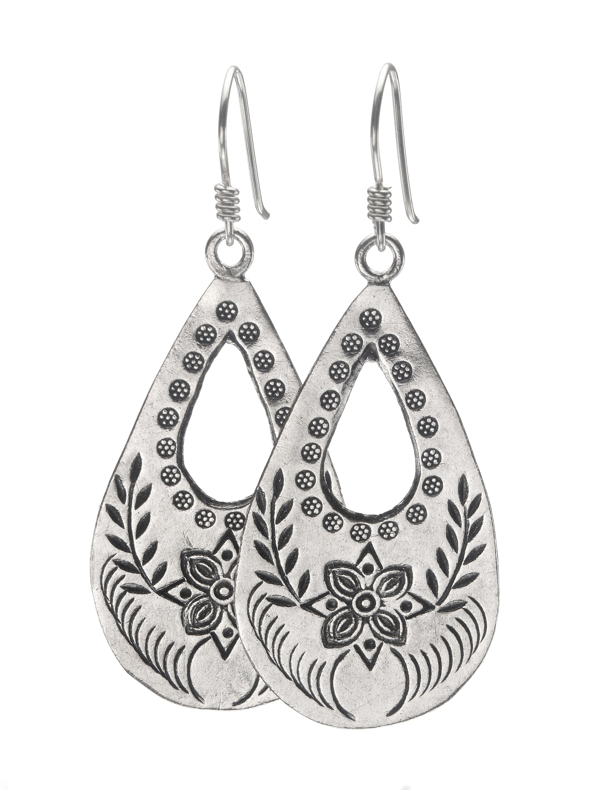 Our Bohemian Flower Earrings are meticulously stamped with traditional Karen hill tribe designs and oxidized to enhance the details. Made from fine silver, our earrings are nickel-free, so people with sensitivities will be comfortable wearing them.