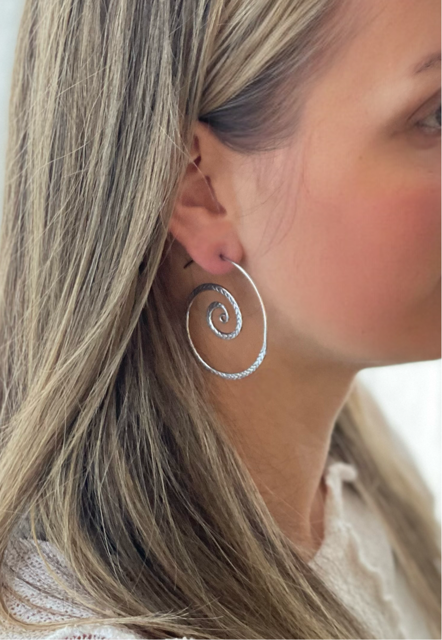 Our Ancient Spiral Earrings are meticulously stamped with traditional Karen hill tribe designs. Made from fine silver, our earrings are nickel-free, so people with sensitivities will be comfortable wearing them.