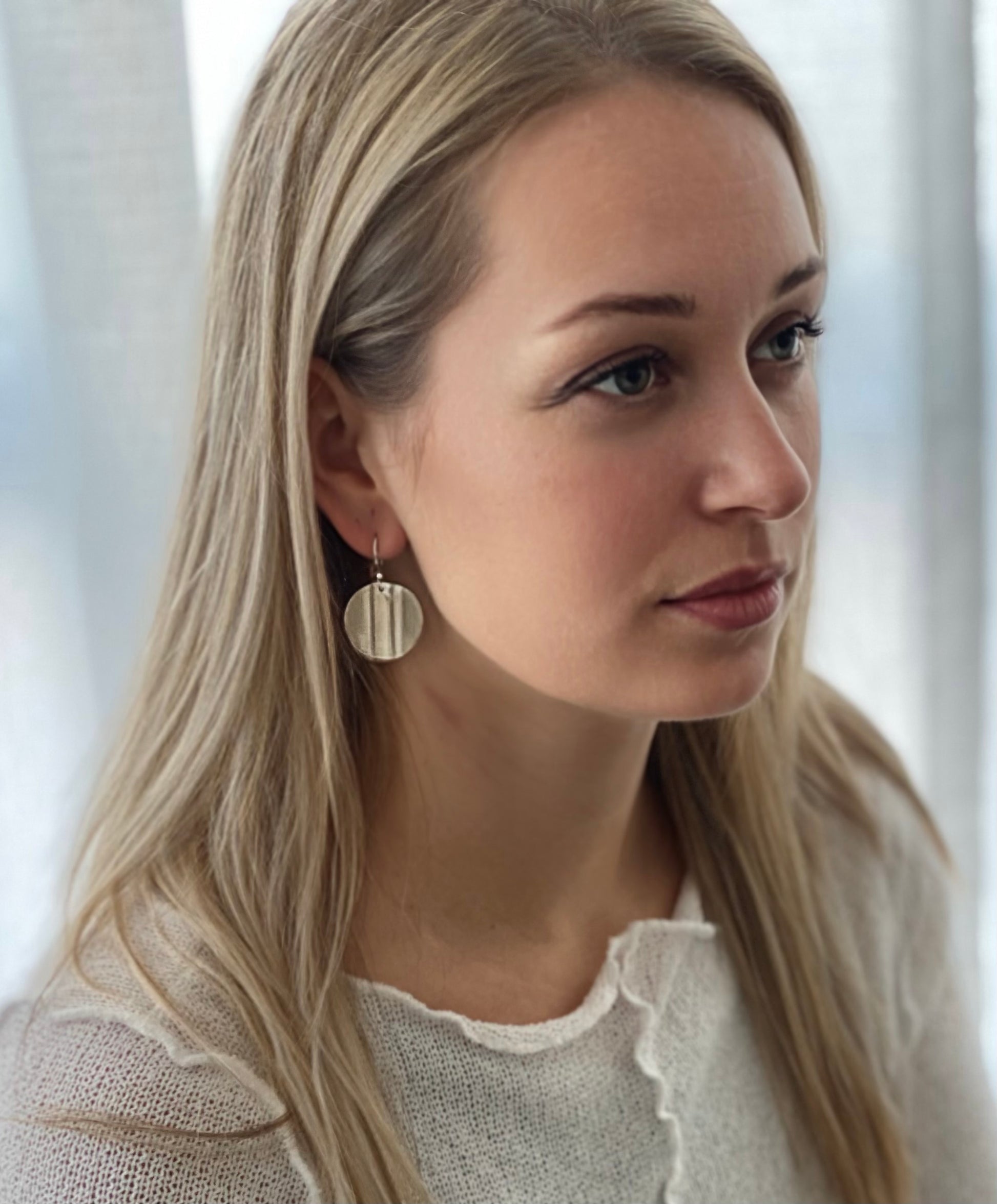 Our Moon Disc Earrings are made of bright, reflective silver. They are medium size, which is perfect for daily wear. All of our earrings are made from nickel-free, fine silver.