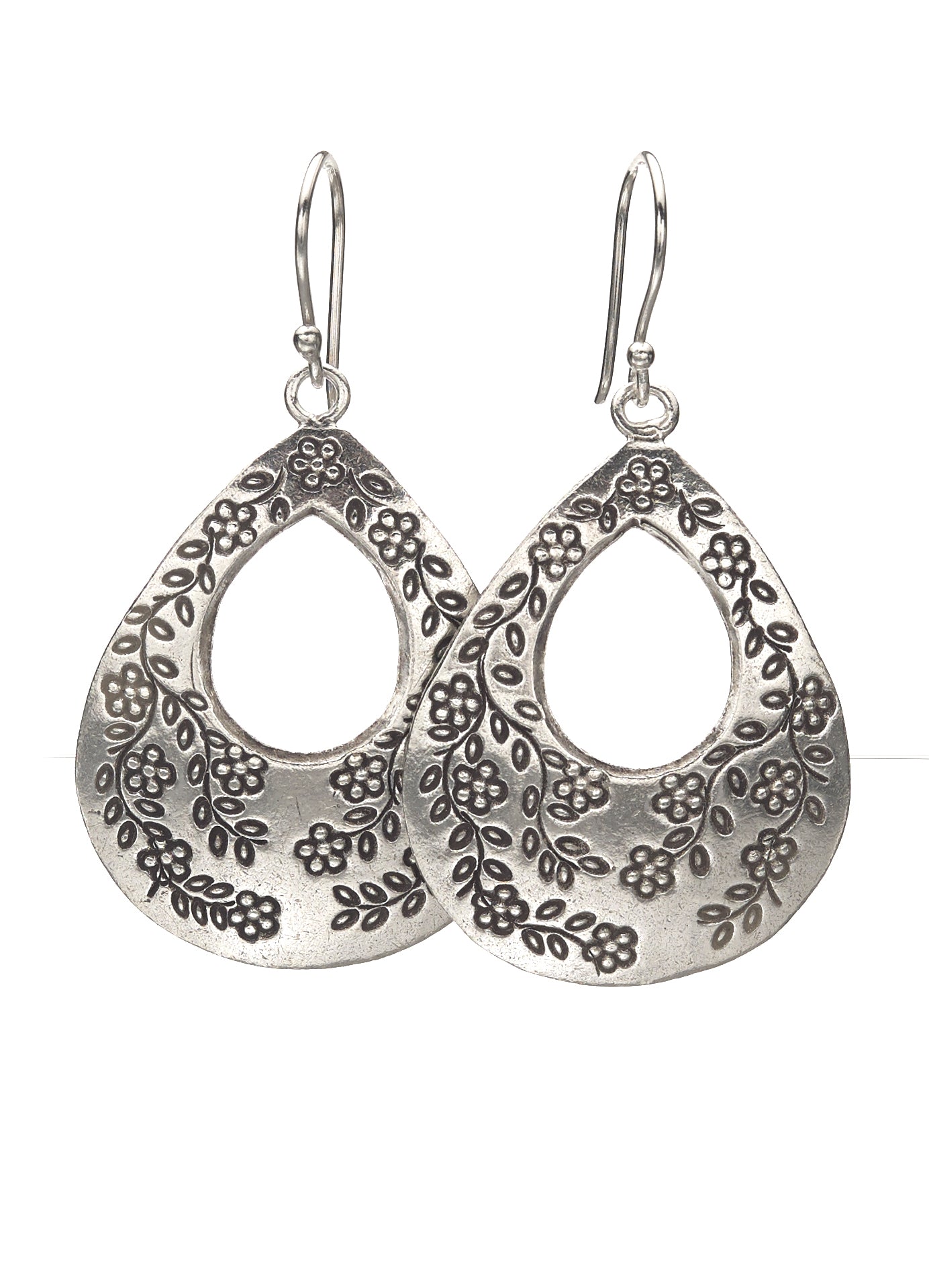 Our Blossom Grove Earrings are meticulously stamped with traditional Karen hill tribe designs and oxidized to enhance the details. Made from fine silver, our earrings are nickel-free, so people with sensitivities will be comfortable wearing them.