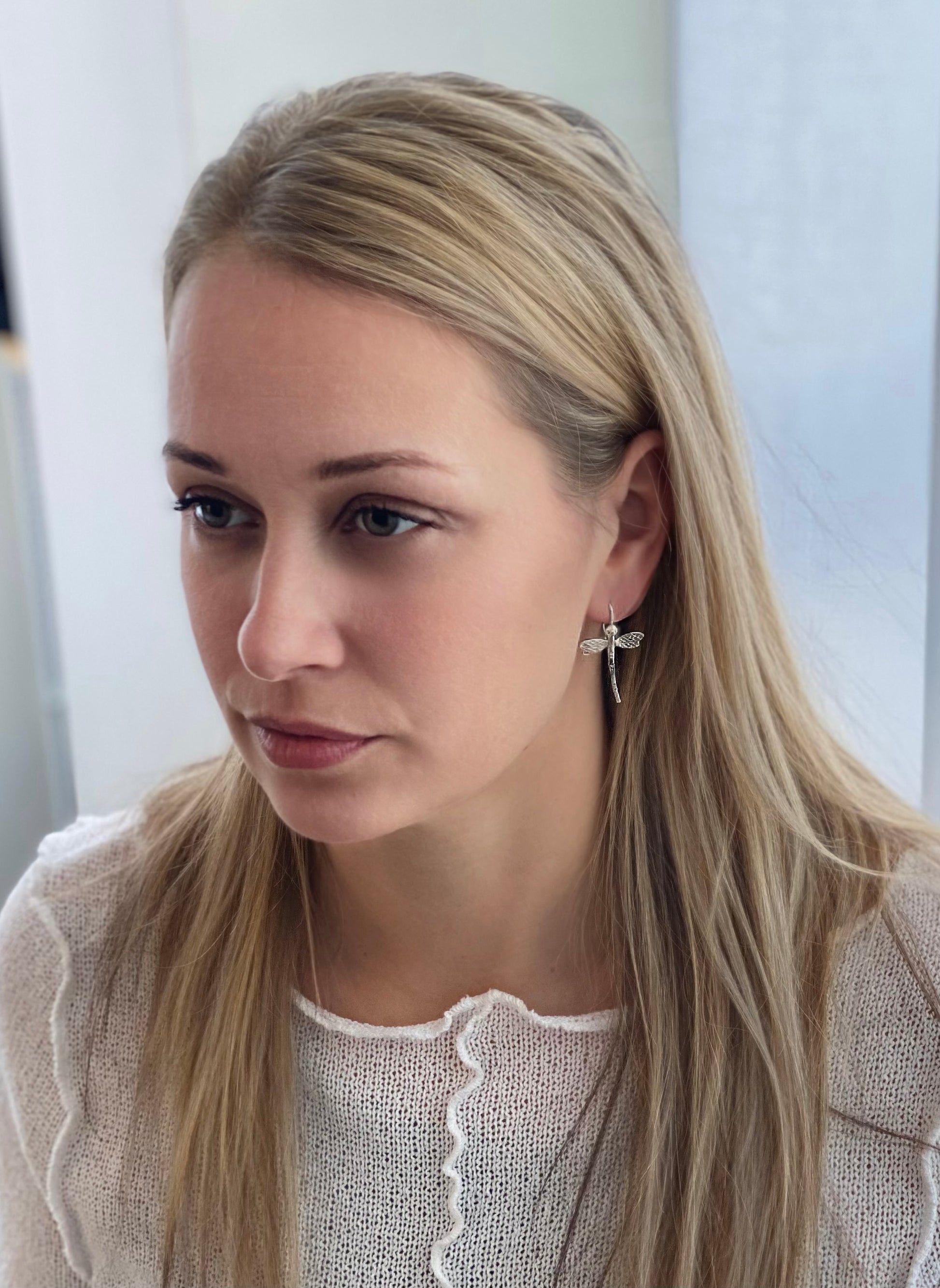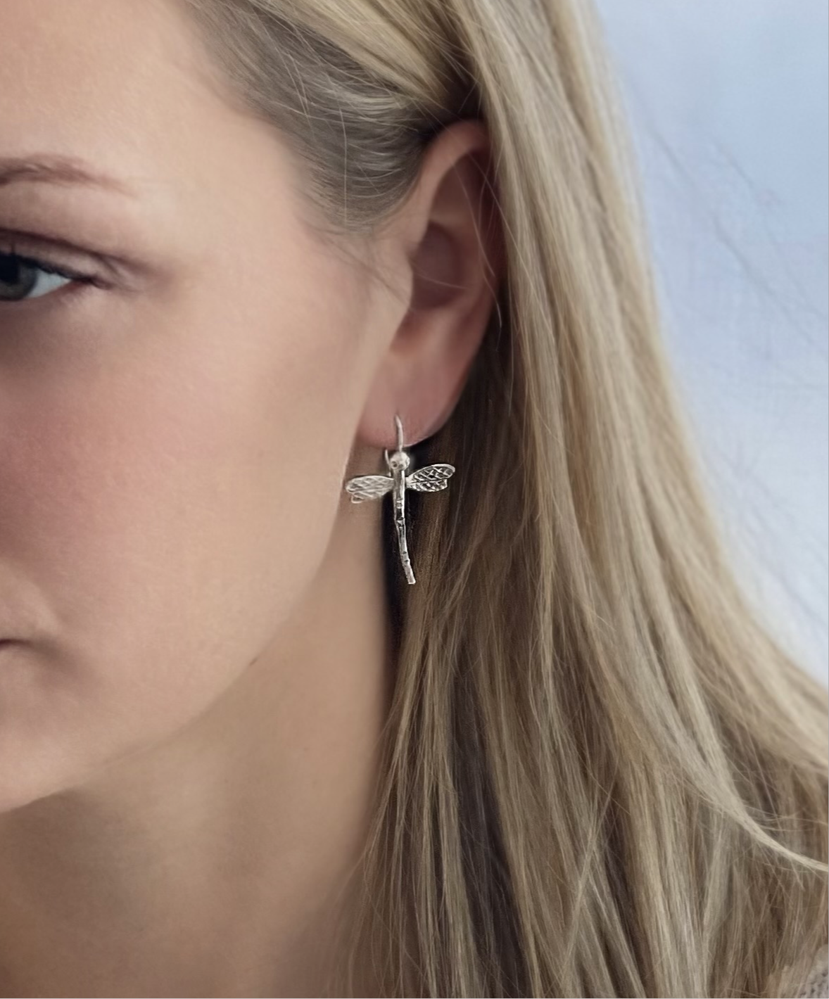 Our Dragonfly Earrings are meticulously stamped with traditional Karen hill tribe designs and oxidized to enhance the details. Made from fine silver, our earrings are nickel-free, so people with sensitivities will be comfortable wearing them.