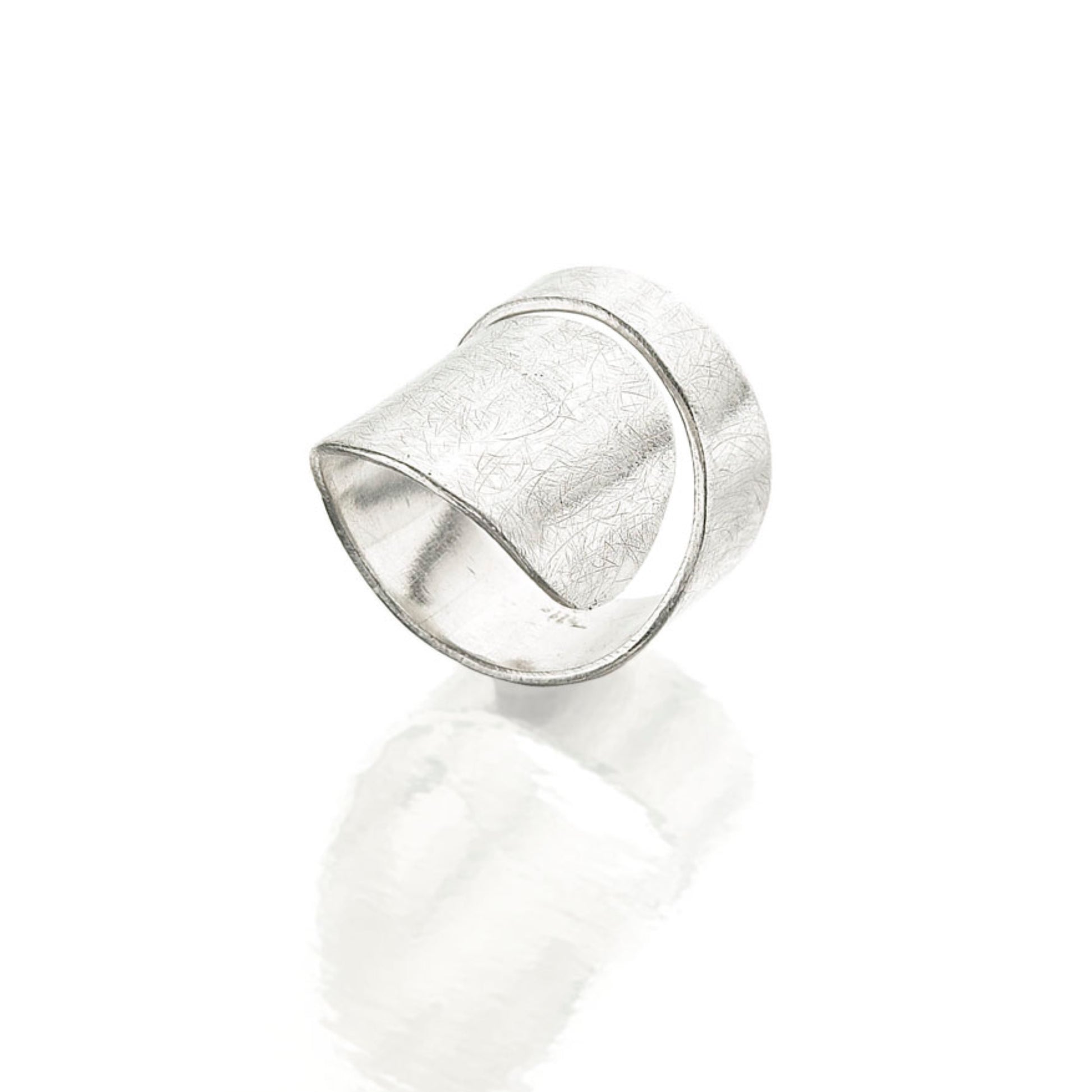 Our Glacial Wrap Ring is made of bright, brushed silver, which gives it an icy-like shimmer in the light. It is a modern design with a nod to a traditional shape. The ring slightly tapers towards the back and has a slight opening to allow for slight size fluctuation.