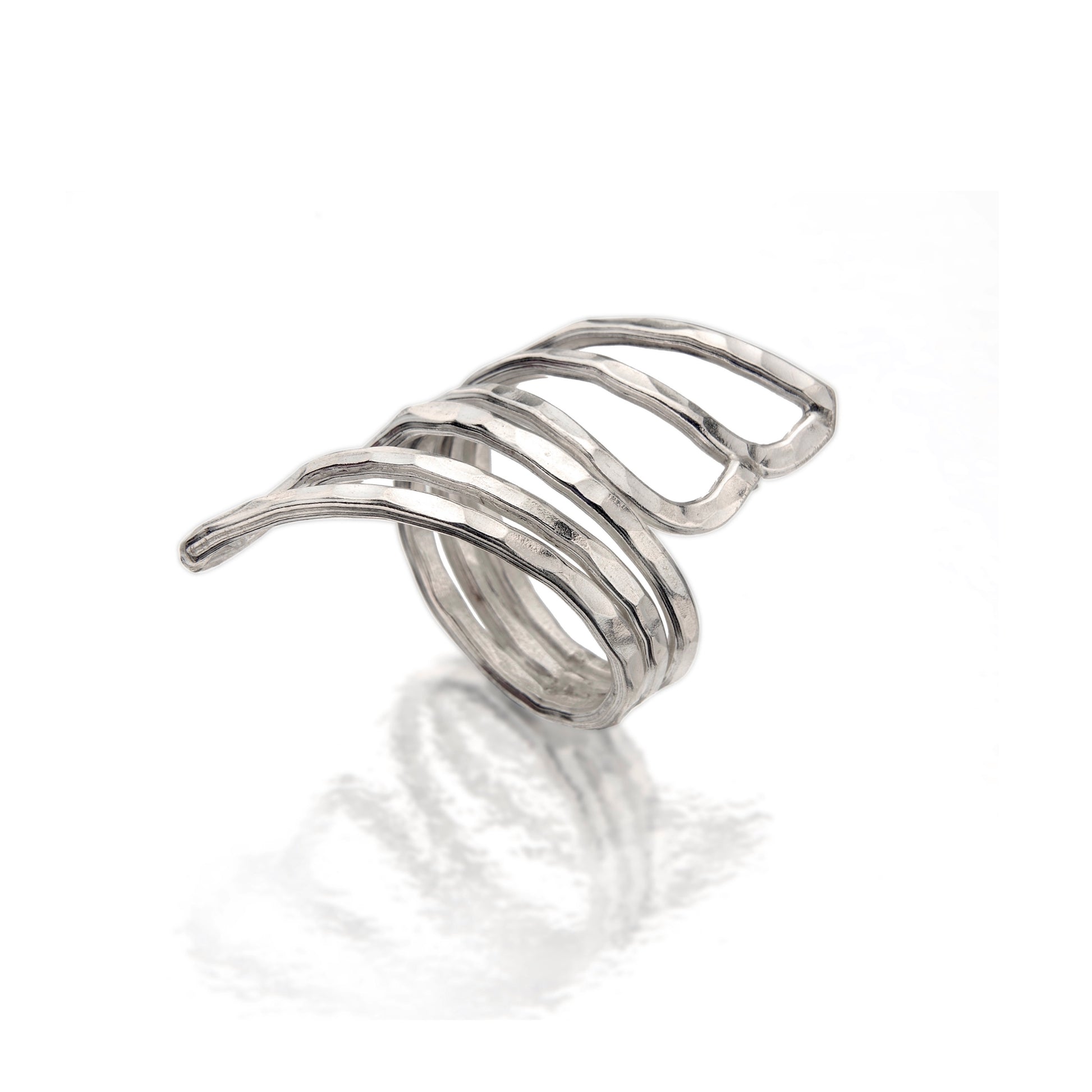 Our Light Ring is bright, hammered silver that dances with light reflections. All of our rings are made from non-allergenic nickel-free fine silver, so people with sensitivities will be comfortable wearing them.