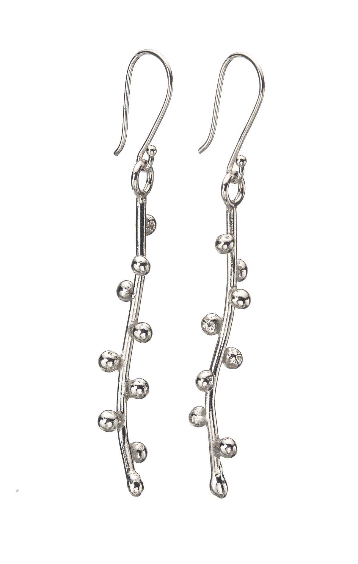 Our Spring Willow Earrings are bright silver with tiny balls that catch the light. They are made from non-allergenic nickel-free fine silver.