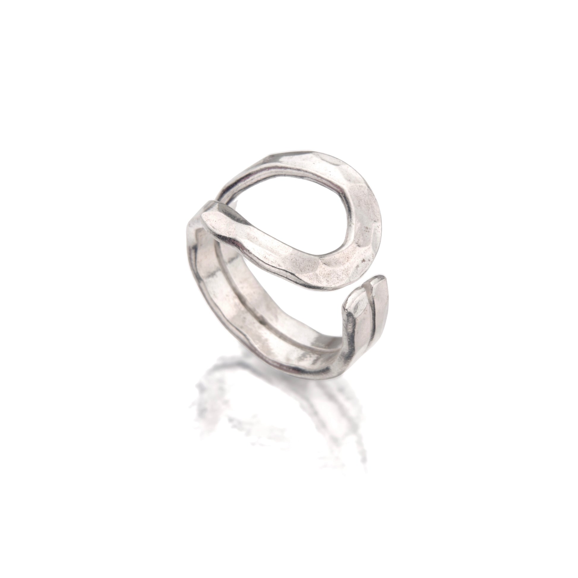 Our delicate Eye Light Ring is made of bright, hammered silver that dances with light reflections. It's open on the side which gives it a slight adjustability. Our rings are made from non-allergenic nickel-free fine silver, so people with sensitivities will be comfortable wearing them.