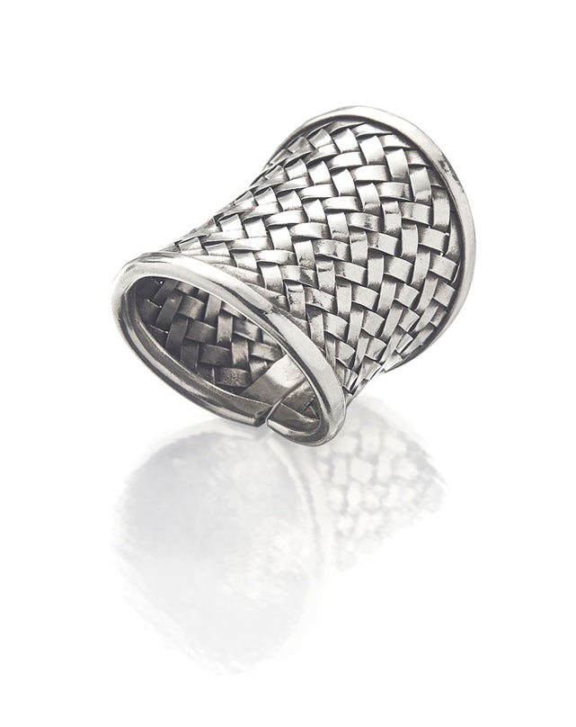 Our Dream Weaver Ring is a traditional design. Each ring is made from solid fine silver. In the making of each ring, the silver strands are woven together, then oxidized to enhance its details.